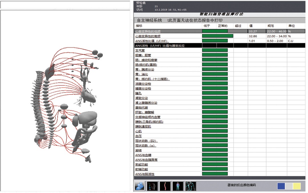 鷹演全身健康掃描系統不僅限于疾病檢測,更適用于健康管理和疾病風險早期篩查。系統能夠對于干預前后、用藥前后、調理前后的效果進行深度對比,為功能性疾病的診斷提供有力支持。如功能性胃腸疾病、由于情緒、心理壓力導致的功能性疾病等,在臨床上往往難以通過常規手段準確診斷,而鷹演系統則能夠填補這一空白。