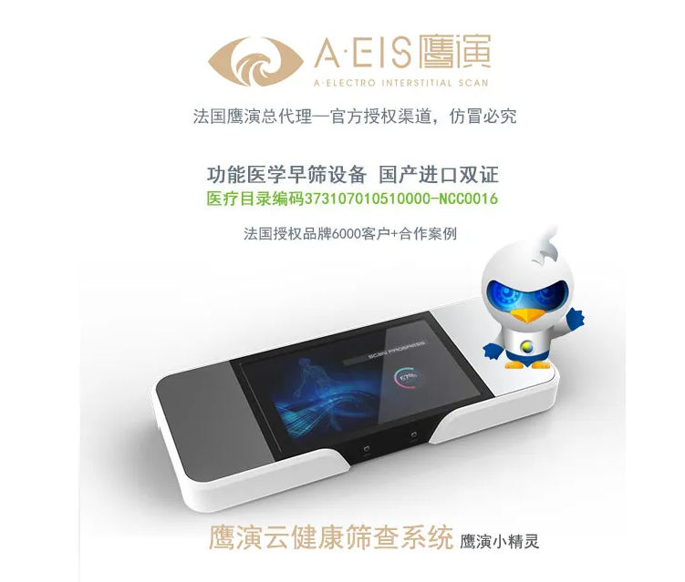 鷹演云健康篩查系統的問世,是鷹演醫學在功能醫學領域中深刻洞察與不懈追求的結晶。自鷹演全身健康掃描系統面世以來的近20年間,它已成為6000多家用戶信賴的功能健康檢測利器,為慢性病管理、亞健康調理、疾病根源追溯及并發癥預防等領域提供了專業的解決方案。而今,鷹演云健康篩查系統在繼承原有設備精髓的基礎上,突破性地融入了智能分析系統,讓健康管理變得更加精準、快捷。